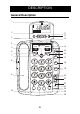 DESCRIPTION 1= 2= 3= 4= 5= 6= 7= 8= 9= 10= 11= 12= 13= 14= 15= 16= 17= 18= 19= 20= 21= 22 = 23 = 24 = 25 = LED (flashes when a new call has been received) Delete Call back, confirm Tone slide control Amplify LED Caller ID mode button Amplify button Speakerphone volume slide control Handset Mute Scroll left Menu Scroll right Earpiece volume control Quick Dial M1 (emergency call number 1) Phone book Quick Dial M2 (emergency call number 2) Quick Dial M3 (emergency call number 3) Quick Dial M4 (emergency call