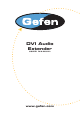 ASKING FOR ASSISTANCE Technical Support: Telephone (818) 884-6294 (800) 545-6900 Fax (818) 884-3108 Technical Support Hours: 9:00 AM to 5:00 PM Monday through Friday. Write To: Gefen Inc. C/O Customer Service 6265 Variel Ave. Woodland Hills, CA 91367-9897 Notice Gefen Inc. reserves the right to make changes in the hardware, packaging and any accompanying documentation without prior written notice. The DVI Audio Extender is a trademark of Gefen Inc. © 2006 Gefen Inc.