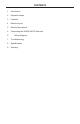 CONTENTS 1 Introduction 2 Operation Notes 3 Features 4 Module Layout 5 Module Descriptions 6 Connecting the 3GSDI SM FO Extender 6 Wiring Diagram 7 Troubleshooting 8 Specifications 9 Warranty