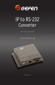 Operating Notes • When using the IP to 2 x RS-232 Converter for the first time, it is recommended that the unit be configured using the Gefen Discovery Tool. The Gefen Discovery Tool is free software that is available from the Support > Downloads section of the Gefen Web site. IP to 2 x RS-232 Converter is a trademark of Gefen, LLC. © 2014 Gefen, LLC. All Rights Reserved. All trademarks are the property of their respective owners.