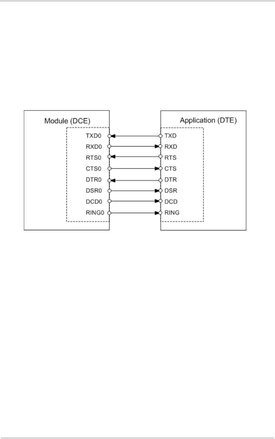 • Port TXD @ application sends data to the module’s TXD0 signal line
