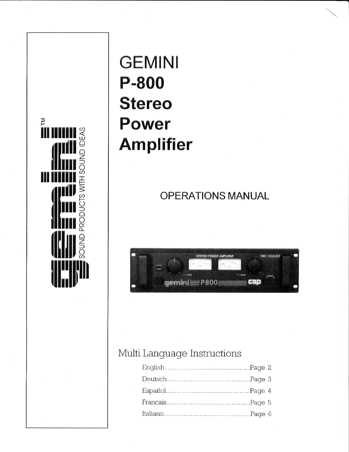 - Gemini Stereo Power Amplifier Operations Manual