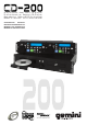 INTRODUCCION: Felicitaciones por su compra del doble lector CD-200 de Gemini. Este nuevo aparato está apoyado por una garantía de tres años, excepto los láser. Garantía de un año sobre los lectores láser. Antes de su uso, le recomendamos que lea cuidadosamente todas las instrucciones. cualquier entrada de línea disponible de su mezclador. Si el CD-200 se conecta a un amplificador integrado, se puede conectar en los jack de entrada CD o AUX de su receptor.