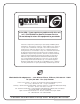 In the USA: If you experience problems with this unit, call 1-732-738-9003 for Gemini Customer Service. Do not attempt to return this equipment to your dealer. Parts of the design of this product may be protected by worldwide patents. Information in this manual is subject to change without notice and does not represent a commitment on the part of the vendor. Gemini Sound Products Corp.