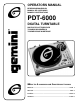 OPERATORS MANUAL BEDIENUNGSHANDBUCH MANUAL DEL OPERADOR MANUEL D’INSTRUCTIONS PDT-6000 DIGITAL TURNTABLE DIGITALER PLATTENSPIELER TOCADISCOS NUMÉRICO TOURNE-DISQUE NUMÉRIQUE MULTI-LANGUAGE INSTRUCTIONS ENGLISH..............................................................................................................PAGE 4 DEUTSCH.............................................................................................................PAGE 7 ESPAÑOL......................................................