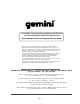 In the USA: If you experience problems with this unit, call 1-732-738-9003 for Gemini Customer Service. Do not attempt to return this equipment to your dealer. Parts of the design of this product may be protected by worldwide patents. Information in this manual is subject to change without notice and does not represent a commitment on the part of the vendor. Gemini Sound Products Corp.