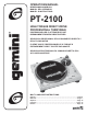 Introduction Nos félicitations à l’occasion de votre achat de la platine vinyle professionnelle Hi-Torque à entraînement direct pilotée par quartz PT-2100 de Gemini. Cette platine vinyle très moderne inclut les dernières caractéristiques de la technologie de platines vinyles à entraînement direct. Avant son emploi, nous vous recommandons de lire soigneusement les instructions.