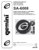 OPERATIONS MANUAL BEDIENUNGSHANDBUCH MANUAL DEL OPERADOR MANUEL D’INSTRUCTIONS SA-600II DIRECT-DRIVE MANUAL TURNTABLE HANDDREHSCHEIBE MIT DIREKTANTRIEB GIRADISCOS MANUAL DE ACCIONAMIENTO DIRECTO TABLE TOURNANTE MANUELLE À ENTRAÎNEMENT DIRECT MULTI LANGUAGE INSTRUCTIONS: English...............................................................................................................Page 3 Deutsch...........................................................................................................