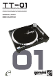 INTRODUCTION: ATTACHER LA COURROIE DE LA PLATINE VINYLE: Nos félicitations à l’occasion de votre achat cette platine vinyle avec entraînement par courroie et bras droit Gemini TT-01. Ce table-tournante très moderne inclut les caractéristiques technologiques les plus récentes. Avant de l’employer, lisez attentivement toutes les instructions.