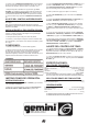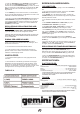 IN THE USA: IF YOU EXPERIENCE PROBLEMS WITH THIS UNIT, CALL 1-732-738-9003 FOR GEMINI CUSTOMER SERVICE. DO NOT ATTEMPT TO RETURN THIS EQUIPMENT TO YOUR DEALER. Parts of the design of this product may be protected by worldwide patents. Information in this manual is subject to change without notice and does not represent a commitment on the part of the vendor. Gemini Sound Products Corp.