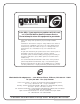 In the USA: If you experience problems with this unit, call 1-732-738-9003 for Gemini Customer Service. Do not attempt to return this equipment to your dealer. Parts of the design of this product may be protected by worldwide patents. Information in this manual is subject to change without notice and does not represent a commitment on the part of the vendor. Gemini Sound Products Corp.