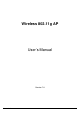 1. Introduction Thank you for purchasing your AP Wireless 802.11g AP. This user guide will assist you with the installation procedure. The package you have received should contain the following items: AP Wireless 802.11g AP User Guide Power Supply / Cord Ethernet Cable Note: if anything is missing, please contact your vendor Gemtek declares that WX-6800-II ( FCC ID: MXF-A930209G ) is limited in CH1~CH11 by specified firmware controlled in U.S.A.