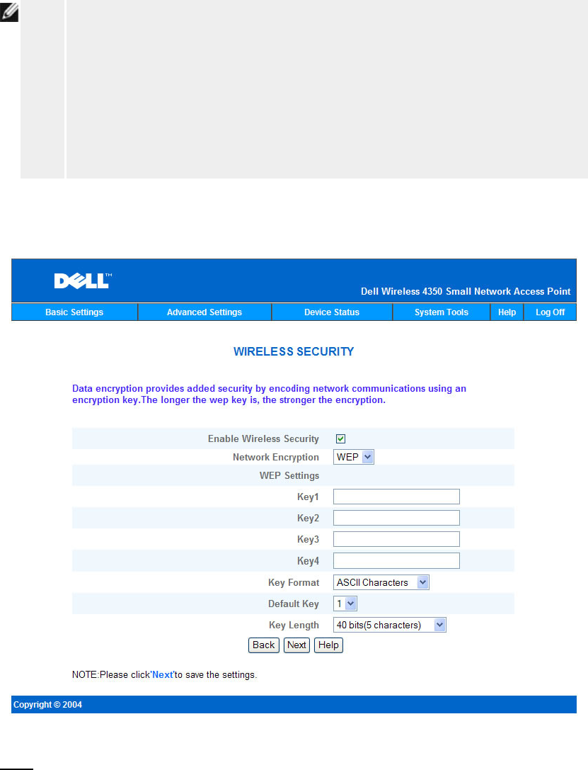 the encryption for the Dell Wireless 4350 Small Network Access Point. The