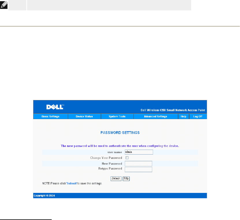 The Dell Wireless 4350 Small Network Access Point uses a password to authenticate the user