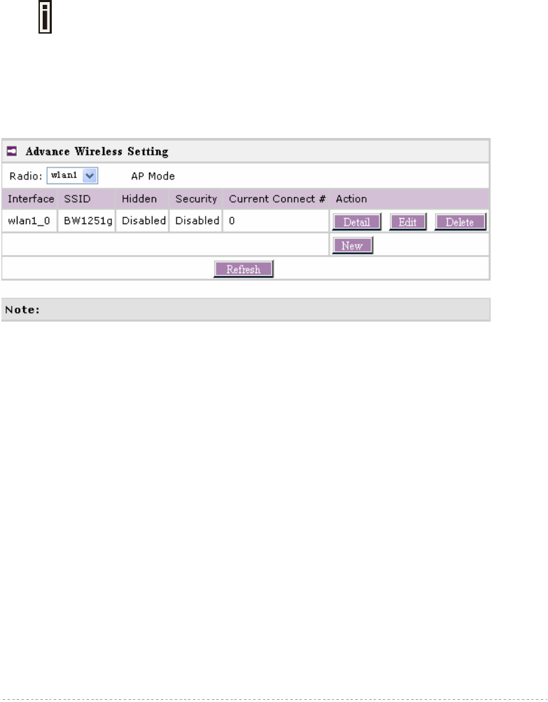 BW1251 supports Multiple BSSID (MBSSID) function. You can configure up to 16 BSSIDs per radio