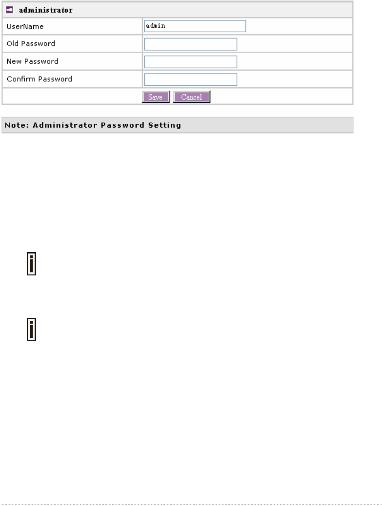 After filling in the right Old password and the New Password, click the Save button to take effect