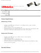 Wireless Nd1 PC Card and PCI Adapter System Requirements ● ● ● ● ● Windows™ XP SP1 or later or Windows 2000 SP4 Available PCI or PC slot CD-ROM drive A functioning Ethernet-based cable or DSL modem or other WAN connection for Internet access A browser that supports HTML 4.01 specification with Javascript enabled © 2005-2006 U.S. Robotics Corporation R46.1334.00 rev 2 9/06 file:///G|/CSO/Documentation/Documentation%20-%20Dr...Mach-1%20PCI%20Card/User%20Guide/english/index.