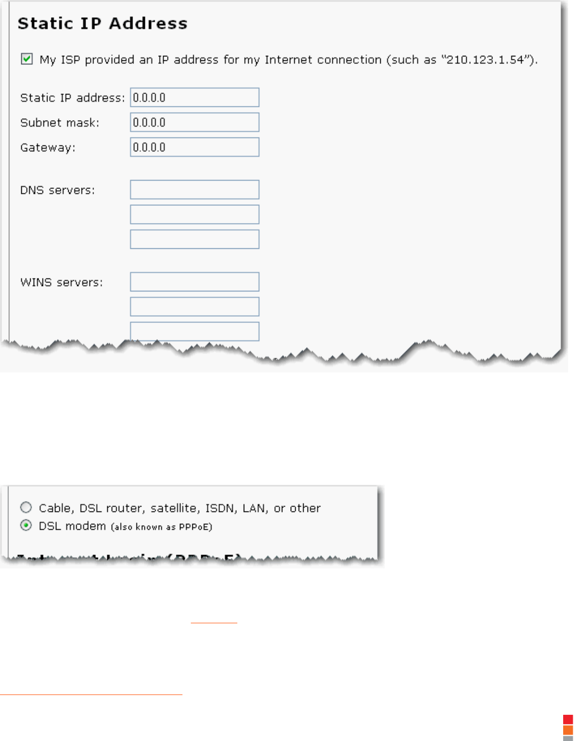 If you are using PPPoE, you must select DSL modem (also known as PPPoE) in the Internet