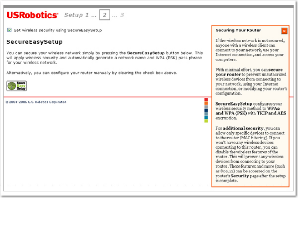 wireless security information for the router, then click Continue.