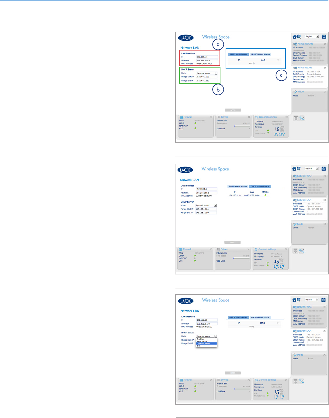 The tabs in Fig. 150, c show devices on the Wireless Space network