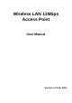 Wireless LAN 11Mbps Access Point User Manual Version 1.2 Feb.