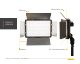 PRODUCT SPECIFICATIONS All Models Specifications LED count: 680 DC cable length: 12.6´ (3.8 m) Dimming: 10% to full brightness Car charger cable length: 3.9´ (1.2 m) Electrical consumption: 40 W Dimensions (W × H × D): 10.35˝ × 7.2˝ × 2˝ (26.3 × 18.3 × 5 cm) Tungsten output equivalent: 300–400 W AC operating voltage: 100–240 V, 50/60 Hz DC operating voltage: 13–19 V Bulb life: 50,000 hr. Wireless receiver: Built-in 2.4 GHz receiver, 99 channels Battery: NP-F750 7.4 V, 4400 mAh, 32.