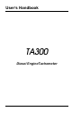 4.2.3 Weak signal due to the characteristics fuel line or fuel injection pump 5.2 Cleaning There are many factors that may contribute to the piezoelectric sensor in not being able to generate a signal (pulse) strong enough for the TA300 to detect. These situations may cause low, slow or inconsistent built up of fuel pressure in the fuel line. Some common causes are listed below: Keep the instrument in its carrying case when not in use and do not subject it to dampness or severe heat or cold.