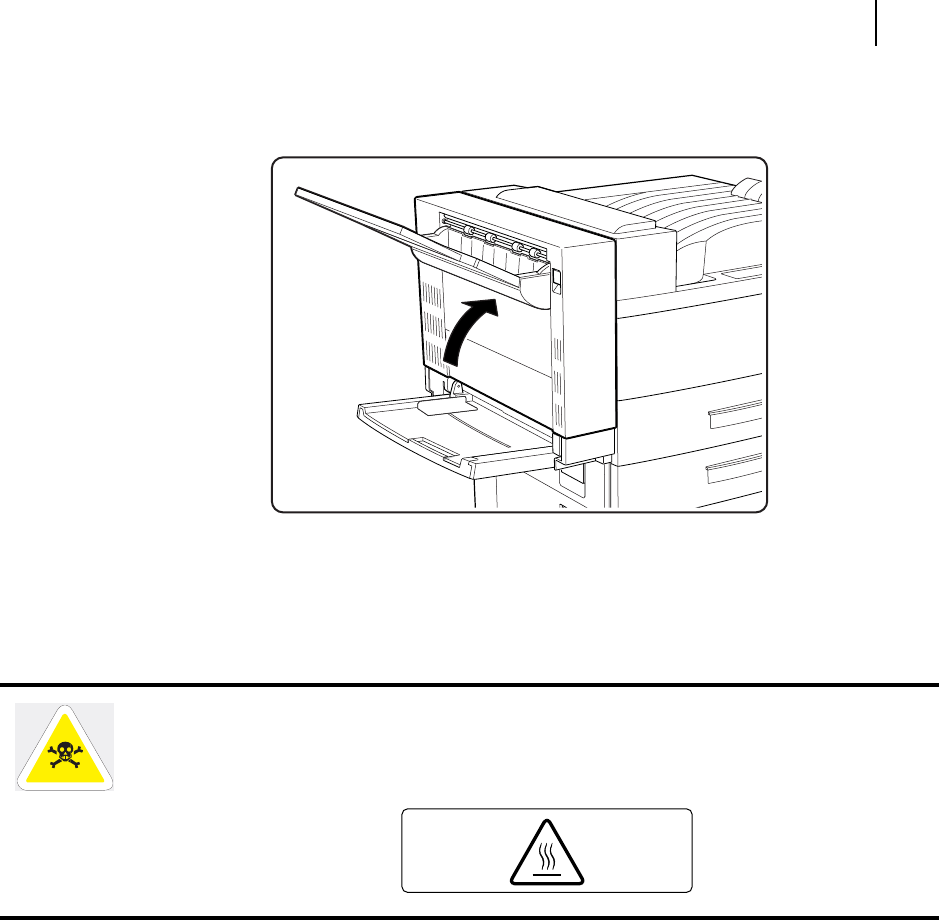 The fuser becomes very hot during operation. Never touch the fuser area where a label