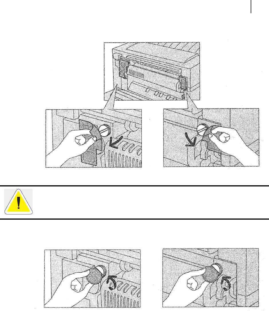 The two metal fuser shipping screws MUST be removed and discarded. They are intended