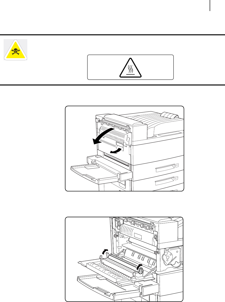Never touch the fuser area where a label indicating high temperature is located (such as
