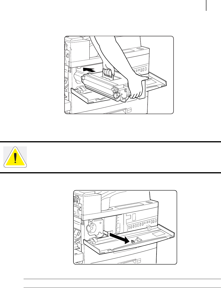 CAUTION: Do not touch any parts inside the printer. Make sure the cartridge is seated prop-