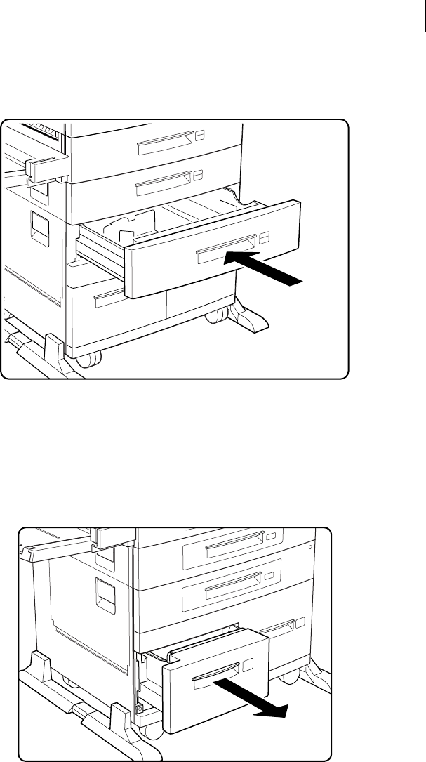 Trays 4 and 5 are designated for printing of A4 or letter size paper. The following illustrate how to add paper