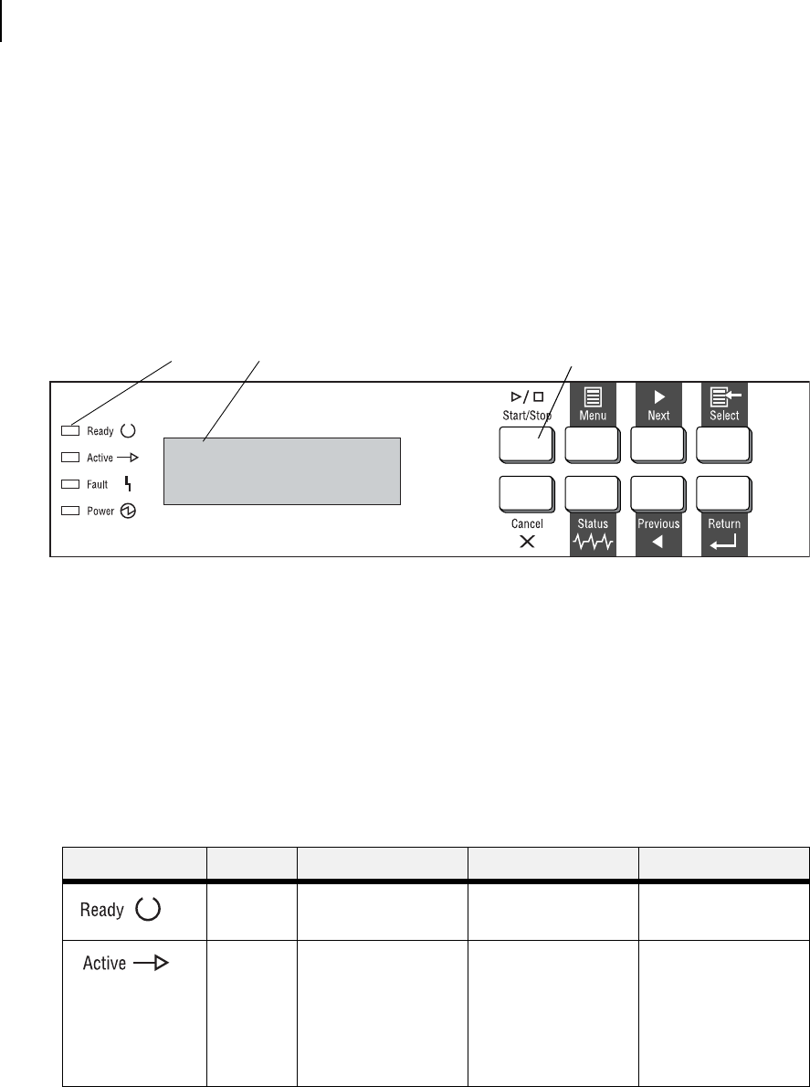 The LED indicators also indicate printer status. The four indicators can each be on, off, or blinking, indicat-