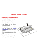Setting Up Your Printer Choosing a Suitable Location Consider the following points when you choose the location for your printer: • The distance between the printer and the host computer must not exceed the length of the interface cable; • The location must horizontal and stable; be 8 0 cm 3 1 .5 in . sturdy, • Your printer must not be exposed to direct sunlight, extreme heat, cold, dust or humidity (see P Prriinntteerr SSppeecciiffiiccaattiioonnss later in this User’s Manual); 1 39 00 .