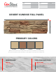 FAMILY STACKED STONE DEPTH 1.25 INCHES WARRANTY 25 YEARS WEIGHT 3 LBS COVERAGE AREA 3.13 SQFT R-VALUE 3.6 PER INCH DESERT SUNRISE FULL PANEL 1” 41” 1” 11” PRIMARY COLORS #ceb68e #9e7156 #9d856f #cbae88 Tip: Zoom into the colors on your mobile phone to see how they complement your existing design. You can also use these Hex codes in Photoshop or similar program to view the colors on a larger scale. QUESTIONS TIPS FOR SUCCESS EMAIL US info@genstone.