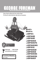 Como usar la parrilla George Foreman® Cuadro de las placas Placa Incluída(s) Pieza Nº Placa de asar 1 22740 GRP90WGR GRP90WGPQ GRP90WGWQ GRP93G GRP94WB GRP94WR Placa para filetes 1 22741 GRP90WGR GRP90WGPQ GRP90WGWQ GRP93G GRP94WB GRP94WR Placas para wafles 2 22743L (inferior) 22743U (superior) GRP90WGR GRP90WGPQ GRP90WGWQ GRP94WB GRP94WR Bandeja para hornear 1 22742 GRP90WGR GRP90WGPQ GRP90WGWQ GRP93G 17 Modelos 1.