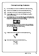 Attach part (1) to part (2) using bolt (K) with hex key (G). Place sticker (D) over holes as per diagram.