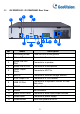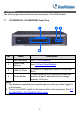 2 Overview The following part shows the front and rear panels of the NVR models. 2.1 GV-SNVR3203 / GV-SNVR6403 Front View 3 1 4 2 No. Name 1 LED Indicators See 1. LED Indicators. 2 Front Panel Buttons See 2.3 Front Panel Buttons. 3 USB 2.0 Ports Connects to a keyboard, mouse, or USB flash drive. Power Button To shut down the NVR, press this button and hold for at least 3 seconds until a message appears. Click yes. 4 Description Note: 1.
