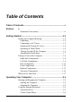 Table of Contents Table of Contents........................................................................i Preface v Notational Conventions.......................................................vi Getting Started ........................................................................1-1 Getting the Computer Running ............................................ 1-2 Unpacking ........................................................................ 1-2 Connecting to AC Power ...............................