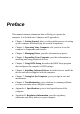 Preface This manual contains information that will help you operate the computer. It is divided into 8 chapters and 2 appendices. z Chapter 1, Getting Started, takes you through the process of setting up the computer and identifying its external components. z Chapter 2, Operating Your Computer, tells you how to use the computer’s components and features. z Chapter 3, Managing Power, provides information on power.