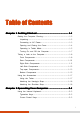 Table of Contents Chapter 1 Getting Started .............................................. .............................................. 1-1 Getting the Computer Running......................................... 1-2 Unpacking................................................................ 1-2 Connecting to AC Power ............................................ 1-3 Opening and Closing the Cover ................................... 1-4 Operating in Tablet Mode ...........................................
