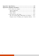 Appendix A Specifications ........................................................................ A-1 Appendix B Regulatory Information ......................................................... B-1 On the Use of the System ........................................... B-2 Class B Regulations ................................................. B-2 ANSI Warning ......................................................... B-3 Safety Notices .........................................................