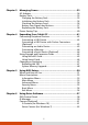 Table of Contents Chapter 1 Getting Started................................................................. 1 Getting the Tablet PC Running ................................................. 2 Unpacking .............................................................................. 2 Installing the Micro-SIM Card (Optional) and Battery Packs ....................................................................................... 2 Connecting to AC Power .......................................................