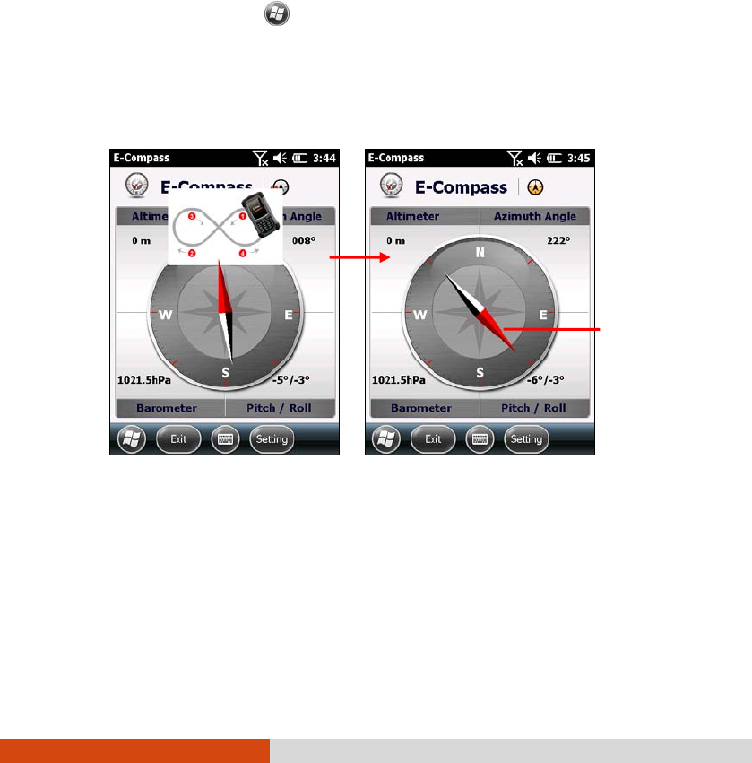 compass. Hold the device in your palm and swing it in the way as shown in