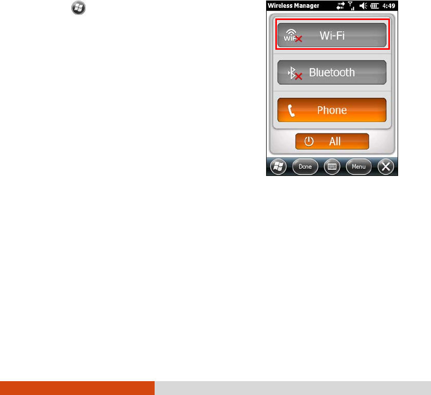 By default, the Wi-Fi radio is switched off. To switch on or off the Wi-Fi