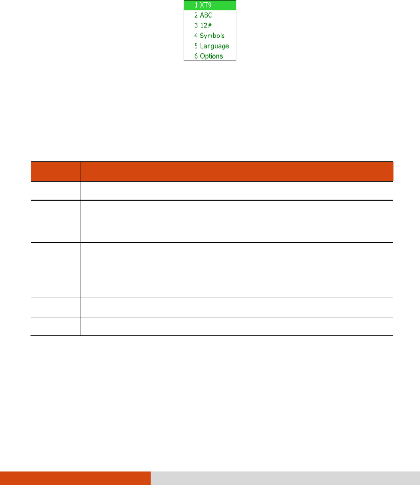 2 ~ 9 Press the key containing the letter you want. A list appears at the