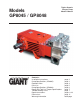 Models GP8045 / GP8048 Triplex Ceramic Plunger Pump Models Manual Contents: Installation Instructions: Pump Specifications (GP8045): Exploded View Parts List: Pump Specifications (GP8048): Repair Kits/Tool List:/Torque Specifications Troubleshooting Chart: Repair Instructions: Dimensions: Warranty Information page 2 page 3 page 4 page 5 page 6 page 7 page 7 pages 8-10 page 11 back page