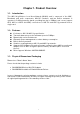Chapter 1. Product Overview 1-1. Introduction This 802.11b/g Wireless Local Area Network (WLAN) card is composed of the MAC, Baseband, and radio components, Mini-PCI interface, and two built-in antennas. It operates in 2.4GHz frequency bands, providing fast (up to 54Mbps) and secure (support AES, 802.1x & WEP and WAP) connections to 802.11b and 802.11g networks from a single card. 1-2. Features Conforms to 802.11b/802.11g specification.