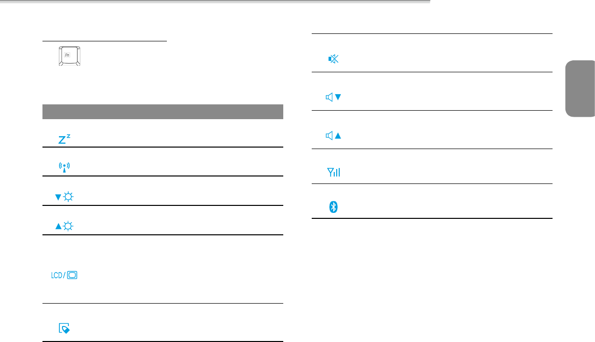 use the Hot Keys, press and hold down <Fn> together with the keys