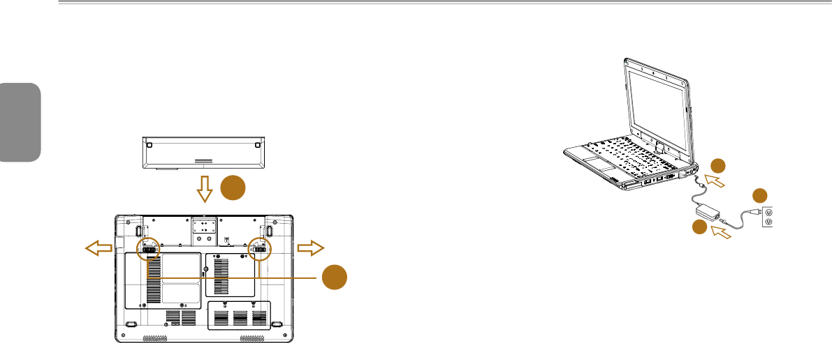 Push the battery lock to the unlock position as shown by #1.